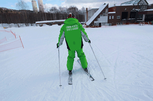 2、转弯时,除了雪板对雪面的加压外,加压的脚掌有向内转向的动作。