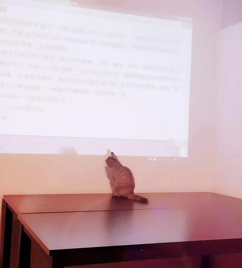 蜜友们陆陆续续地落座了,蜂少对本喵使了个眼色,我便优雅地跳到大屏幕下的长桌上,糯糯地叫了一声,大家就安静了,好,准备观影,而本喵,也将和蜜友们一起欣赏这部《绝命海拔》,并努力用还不太熟练的中文记录下大家的心得,嗯,我半年前刚考入复旦大学文学院2015级的动物中文班,研习古代汉语。