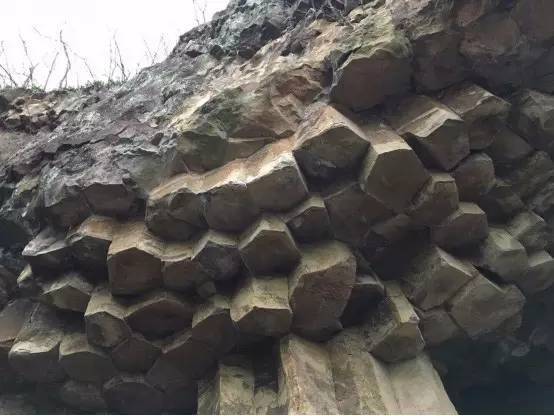走着走着,忽然大巴车停了。天总喊大家醒一醒下车,睡着的小伙伴以为已经到魔都了。下车之后,立马被眼前的石头吸引过去----学名火山岩,柱状节理。