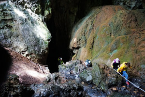 13:30-17:00饭后开始我们沿出口一路而上,到达纪龙山山脚,在领队和向导带领下,溯溪而上,爬上刺激的豹子崖大斜壁。到达山中营地,队伍稍作休整后,放下个人行囊。带上探洞装备,穿戴好探洞装备,在领队和向导的带领下,进入卧龙洞,蜿蜒曲折,螺旋进入洞内,灯光闪处,钟乳石变化万端,伴着我们的呼吸的,是地心隐隐传来水声...时不时传来的“小尖叫”吧! 让我们一起探索洞穴内的未知世界吧