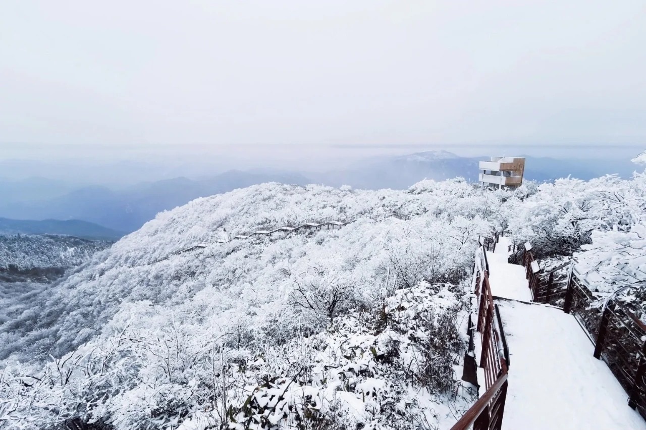 冬天的鸬鸟山,虽说没有满山遍野的杜鹃花,但是清秀的竹林,漫山的白雪,那一望无垠层层叠叠起伏的山脉勾勒的画卷,让我们一起攀登鸬鸟山顶的旅程。