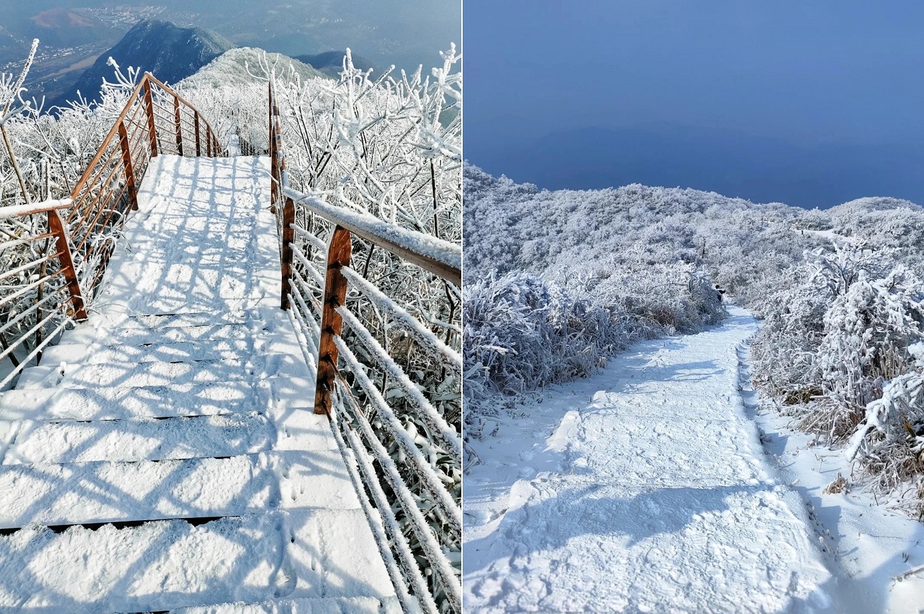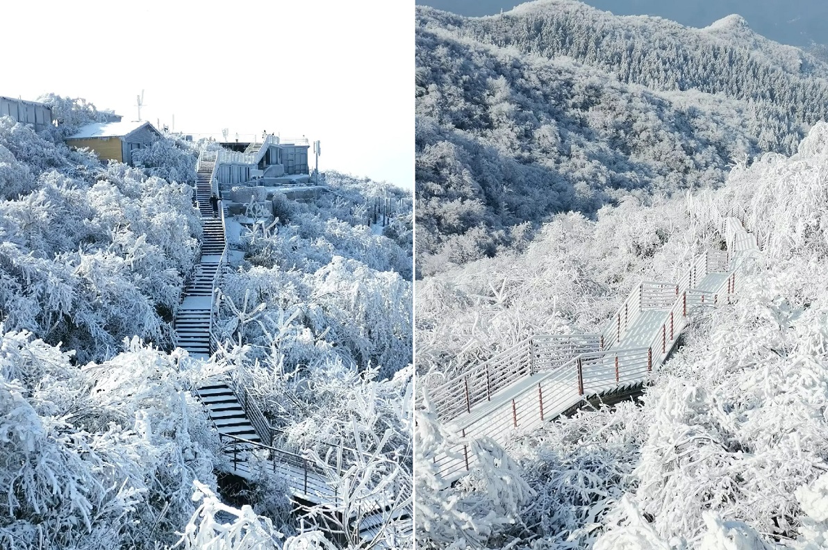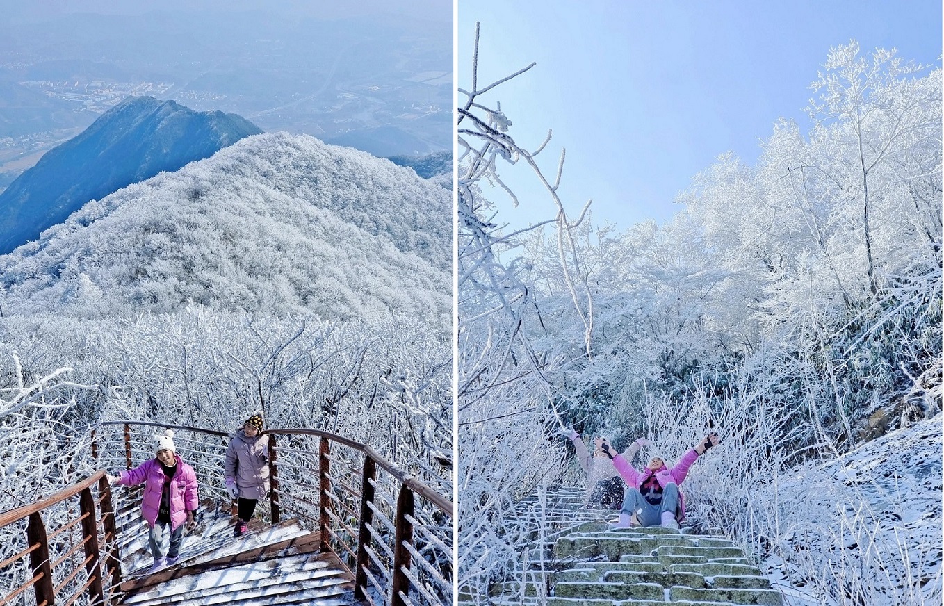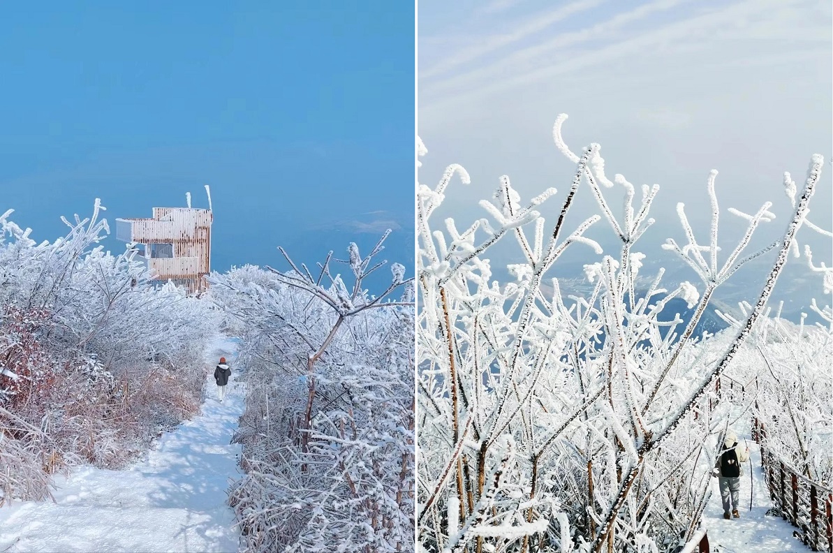 ▍领队说说:鸬鸟山,无敌雪景、少量游客,无需门票,雪后的山林只有白色和绿色,随着山势越来越高,气温冷得很快,积雪厚度也越大,随便构图都是大片