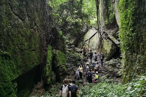 09:00 左右我们从榠楂祖庙开始徒步,列队上山,一路都是土路,约半小时左右到达宁波的一线天。