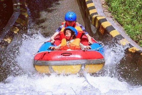 最惊险刺激的便是后段的双S回旋垂直型激流,悬空式的玻璃栈道漂流全长600多米,途中3个360度回转,让你在皮艇中感受“空中漂流”的刺激。最后,回到平缓的大湖中,拿起身边可用的各种“武器”,水仗一触即发,尽情在湖中欢笑玩乐!