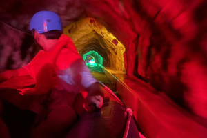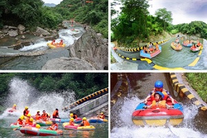 漂流的一开始,你将会进入七彩隧洞,在幽暗的隧道里穿峰绕岩,为漂流增添了一份神秘刺激。从隧道出来之后,将沿着河道继续漂流,途中环境优美、风光旖旎,满目皆是绿色。