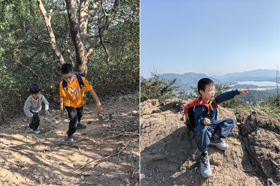 整条路线有攀岩、土路、丛林、山脊行走,野爬趣味十足,而且一步一景,山顶多处270度环湖全景,视野开阔,娃也爬得非常起劲!