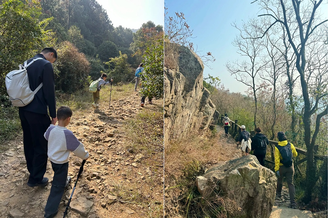 10:00 热身后出发,开始走一小段土路和穿过树林里的野路上水泥路,接着继续走,到达山顶可以俯瞰太湖风光,沿途会经过树林、寺庙、竹林、村庄,路线体验丰富趣味,漫山遍野绿意盎然,沿途繁花似锦。适时找个空旷的地方,享用路餐。稍事休息后开始下山,后半段就是山中的小道、竹林,山里走走很舒服。