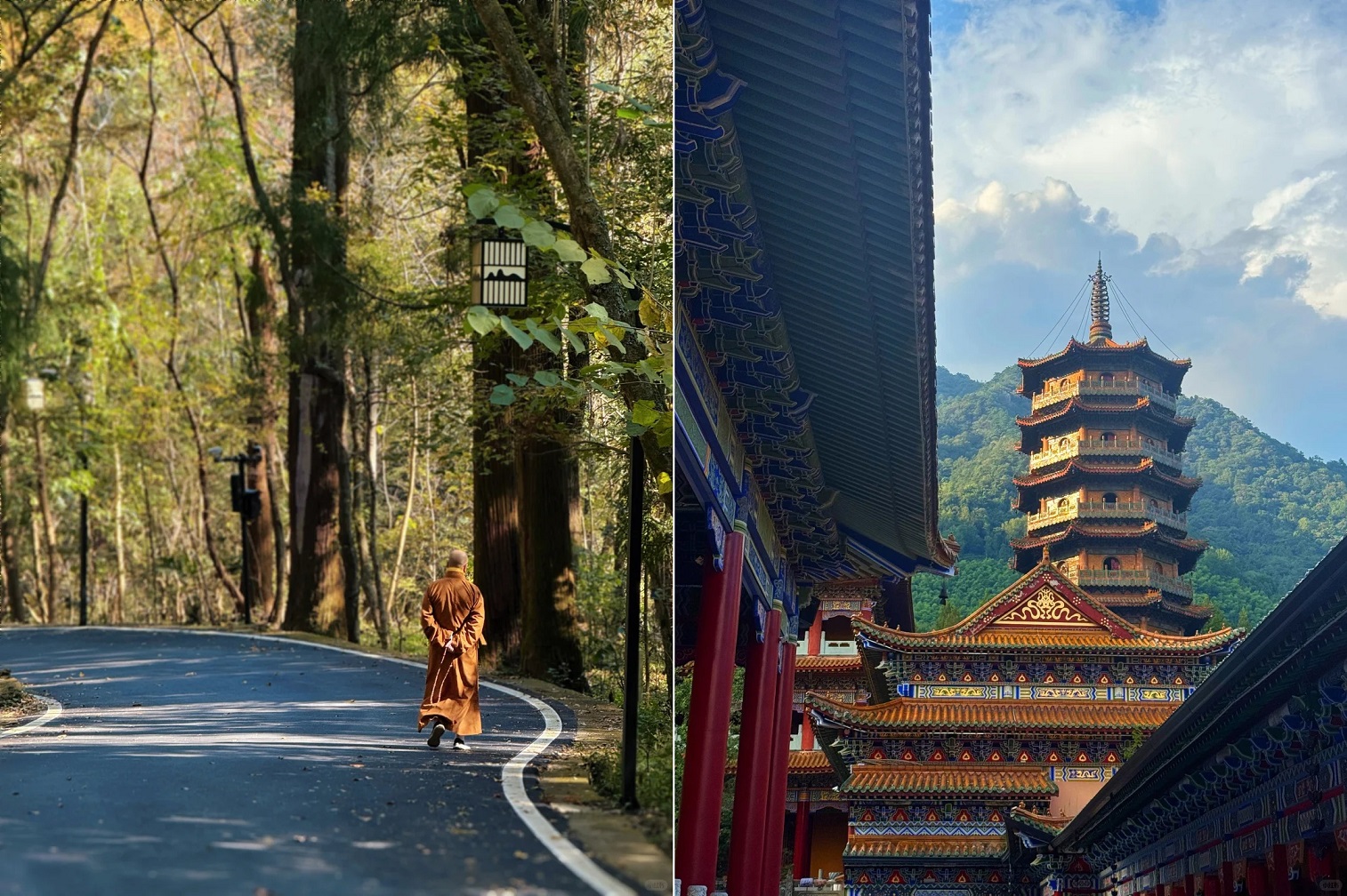 400多棵千年柳杉直插云霄,北魏《水经注》记载的“绿色华盖”至今仍在生长,阳光穿透树冠洒落的瞬间,像极了熊野古道的“大门坂”秘境。