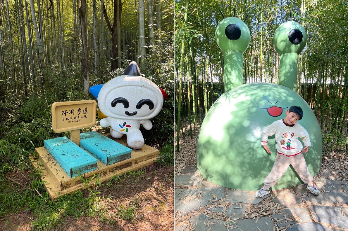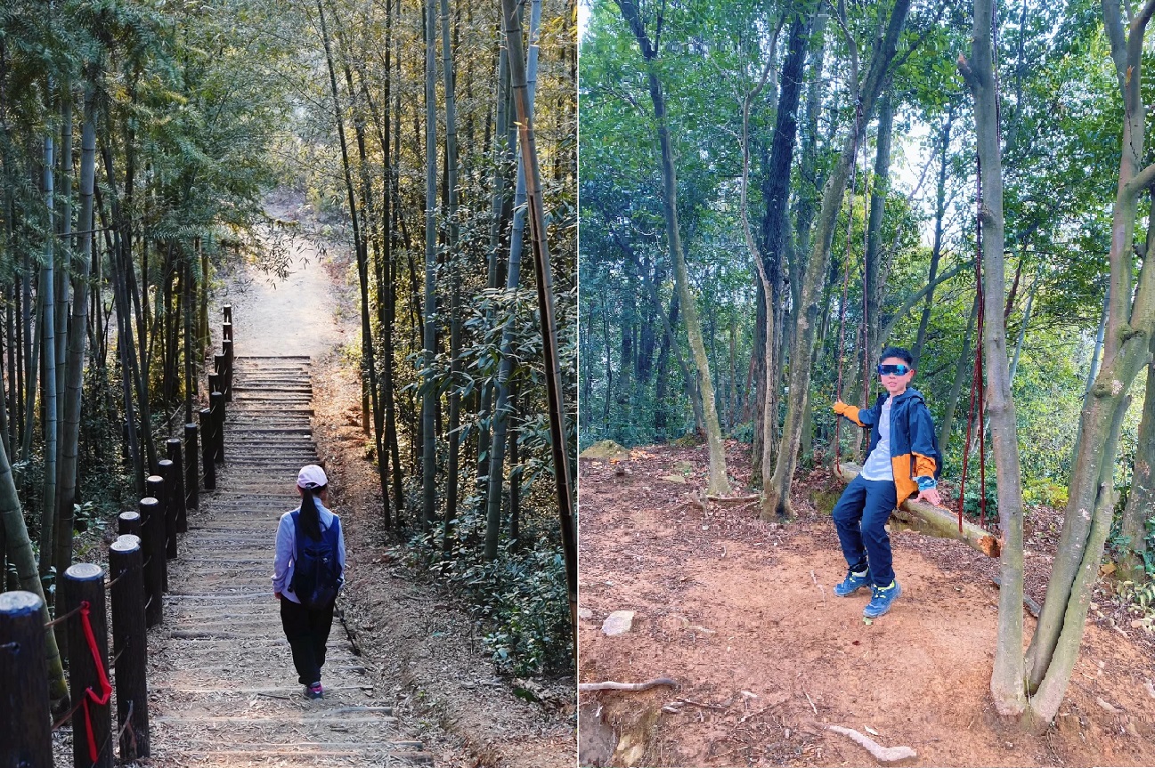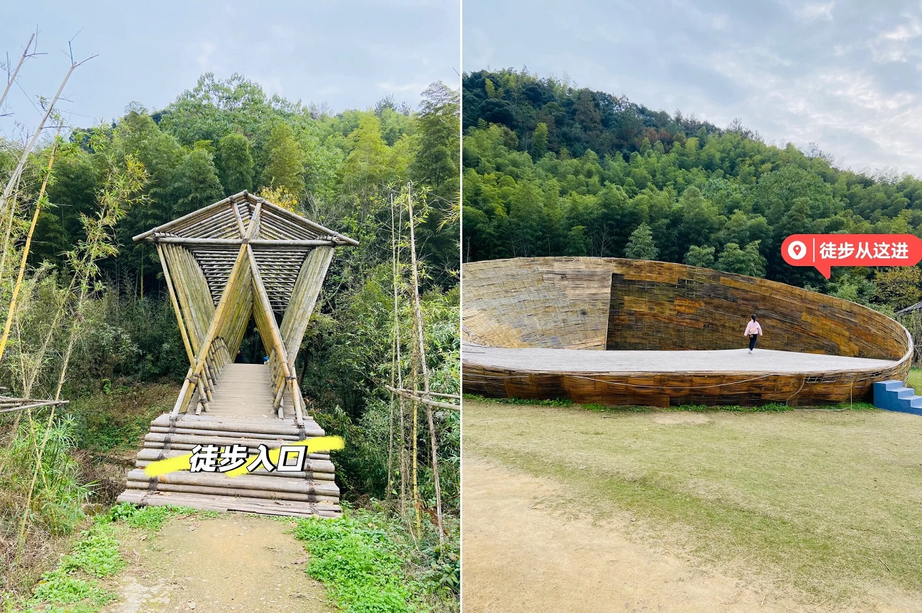 穿过幽静密林、踏上吱呀竹桥,还能在入口处和可爱的“蛙蛙”雕塑打招呼,徒步之旅就从这里正式开启。