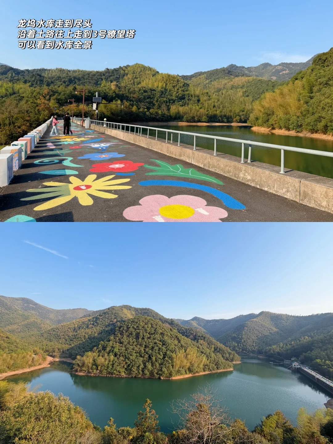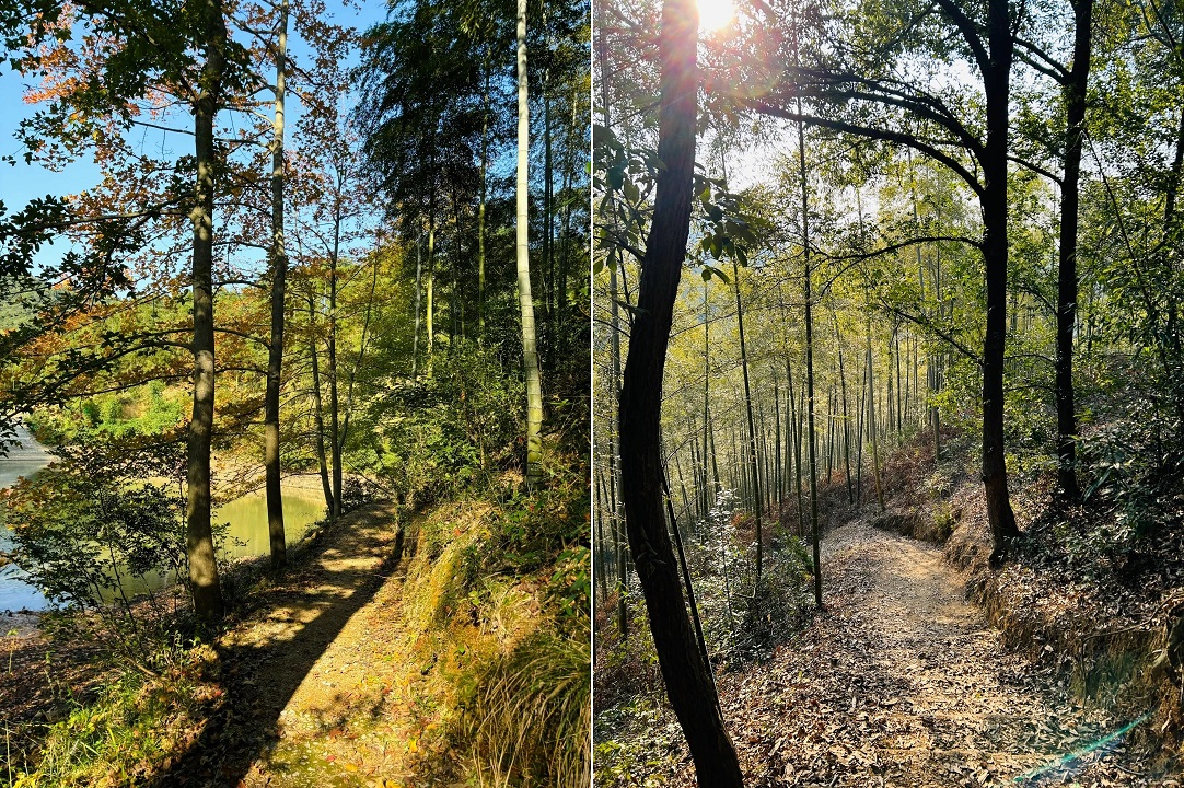 爬上途中的瞭望塔,视野豁然开朗,你可以俯瞰两处清澈的水库——燕子坞和龙坞水库。它们如同两颗绿宝石,静静镶嵌在连绵的山林之间,是全程最令人难忘的风景。