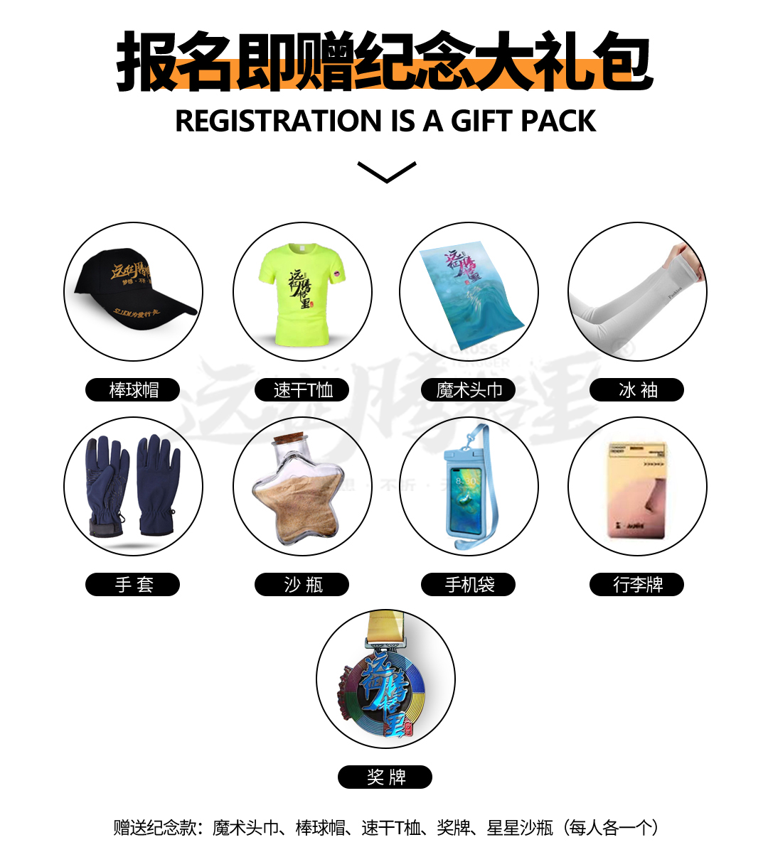 02 赠送装备:棒球帽,魔术头巾,速干t恤,沙套,纪念勋章,许愿瓶,行李牌;