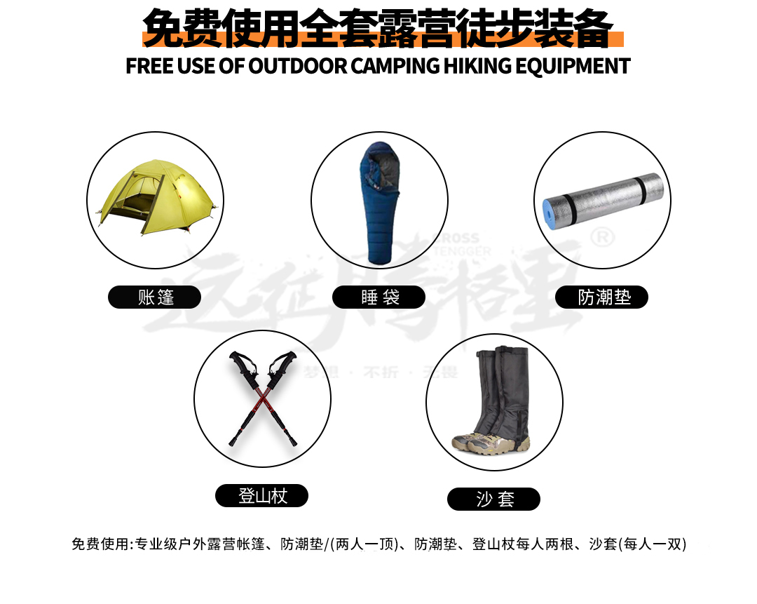 免费住宿:四季双人帐篷(含帐篷/睡袋/防潮垫/2人/顶)