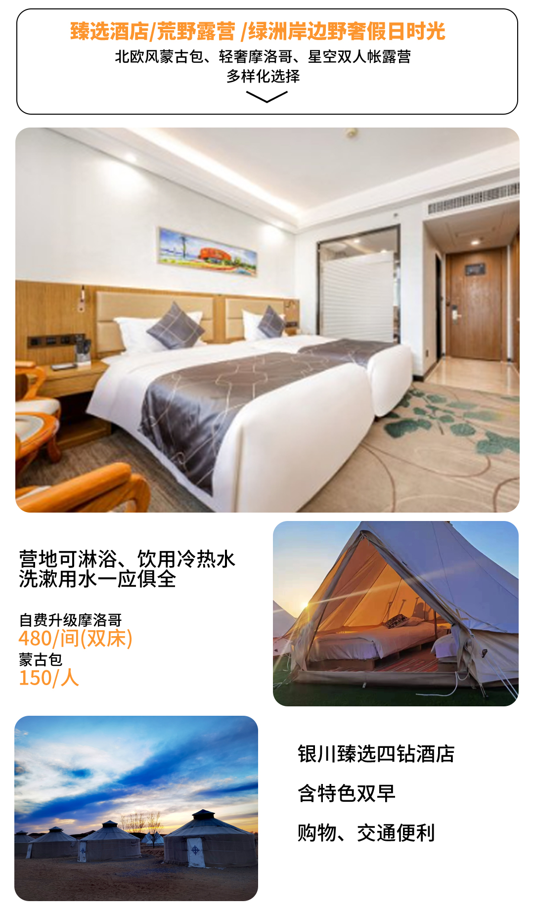 住宿升级:蒙古包10人间(150元/人,不含大型节日)