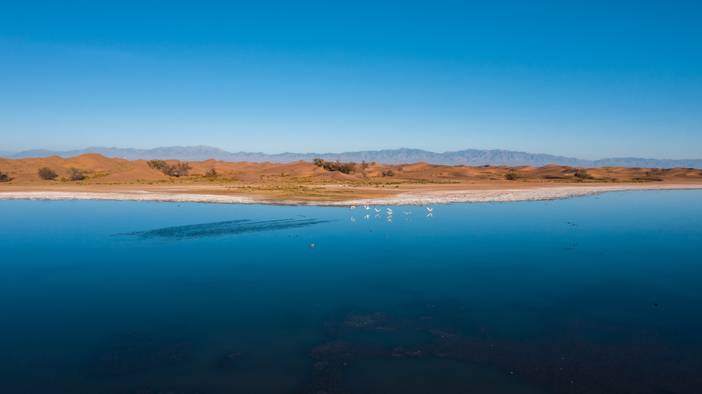 今天是全程最壮观的一天,高耸入云的沙山,蔚蓝的湖泊,曼妙的沙漠曲线都在你的脚下,领队会在沙山之巅带大家滑沙。
