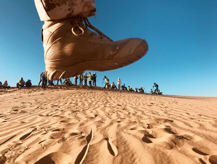 初次见到沙漠,难以抑制激动的心情,先与沙漠适应,掌握沙地行走的技巧和要领,就可畅行无阻,满面春风,在往期活动中,5岁小朋友-70岁垂暮之人,皆完成远征腾格里挑战的壮举,人生最重要的不是我们置身何处,而是我们将前往何处。